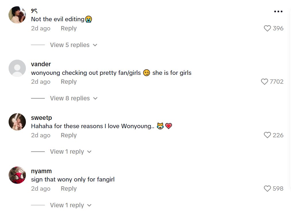 Yet, one TikTok that also gained attention seemingly got more mixed reactions as the OP painted a narrative of Wonyoung’s reaction to a male fan versus a female fan.
