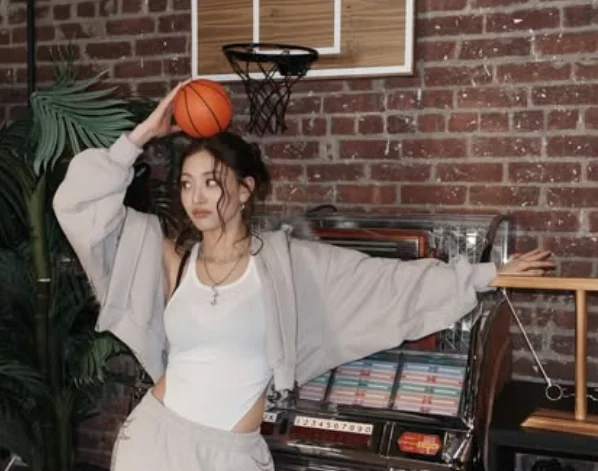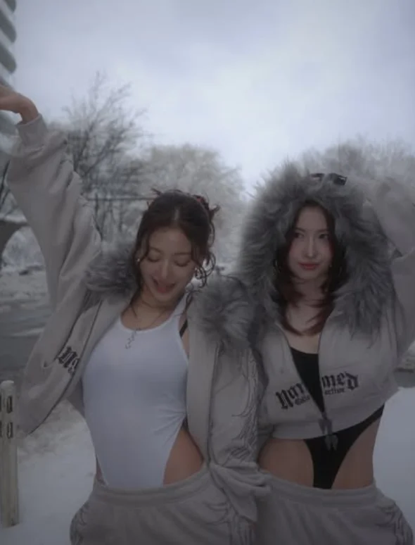 A photo with member Momo also drew attention. Although the design is difficult to pull off even for most models, the pair wore it with confident poses and intense eyes.