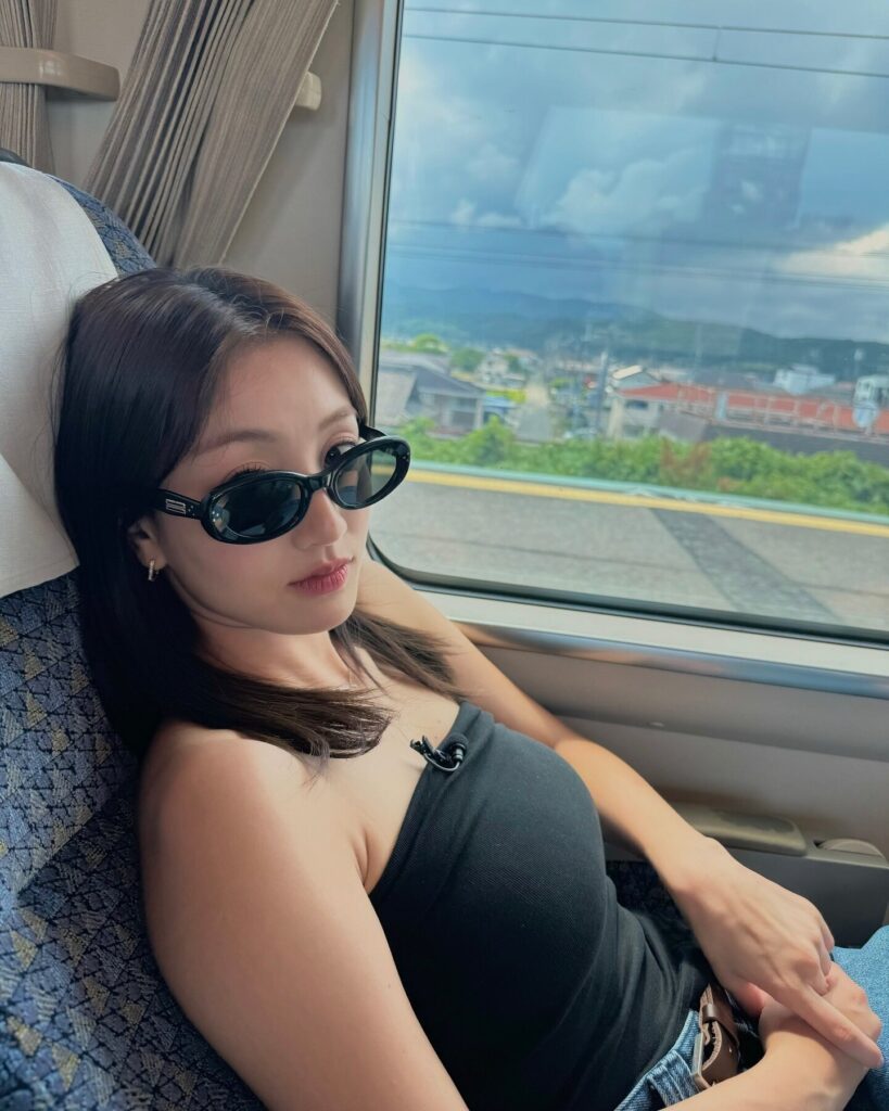 In the photo released, Jihyo is taking a photo inside while travelling by train, informing her fans of her recent status. In particular, Jihyo showed off her glamorous body even when sitting in a black sleeveless T-shirt, making fans admire her.