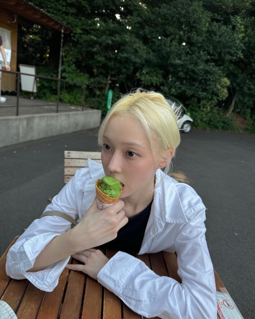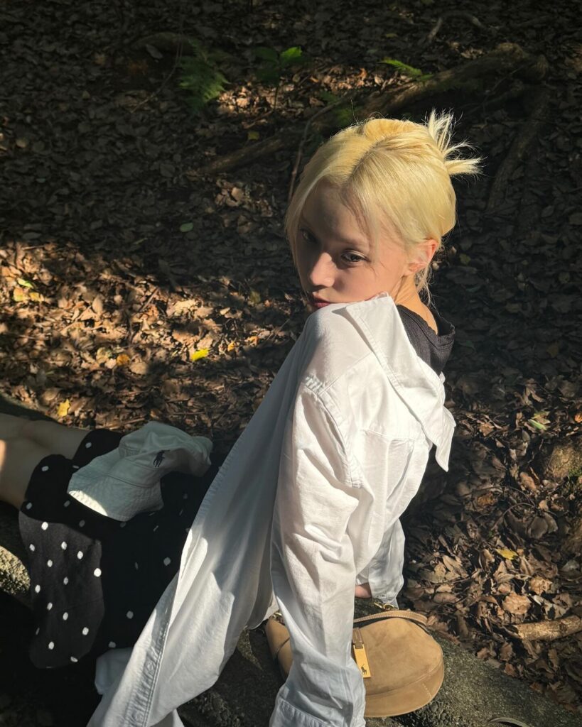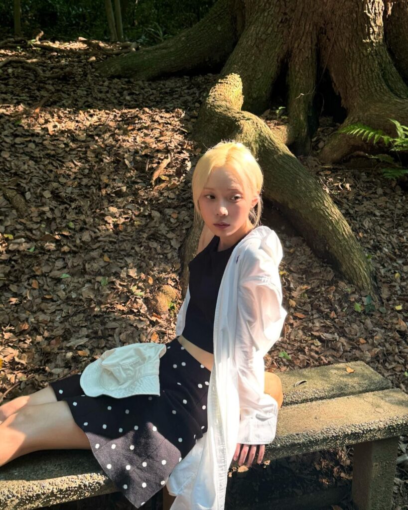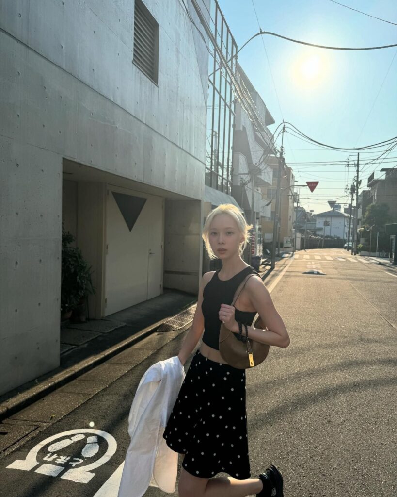 In the released photo, Winter is strutting down the street wearing a black sleeveless crop top and a dot-patterned skirt. In another photo, she is staring at the camera in an expressionless manner while wearing a white shirt. His doll-like features and “ant waist” that seem to be in one hand catch the eye of viewers.