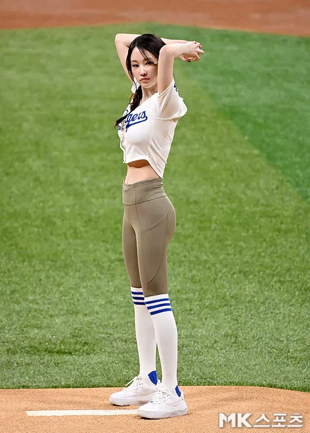 She threw the first pitch for a special match between the LA Dodgers and the Kiwoom Heroes.