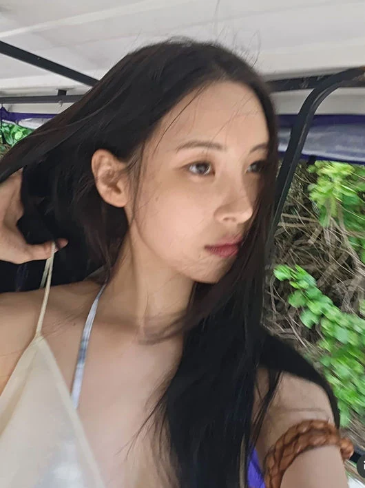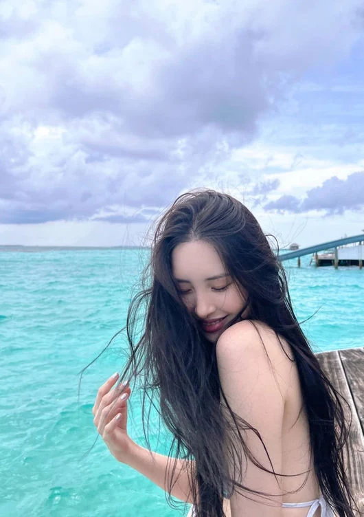 Sunmi posted several pictures on her account without any comment. She is staring at the camera with her face without any makeup on, her wet hair hanging down in the sea breeze full of salt. Sunmi’s innocent face is attractive, as seen in her swimsuit.