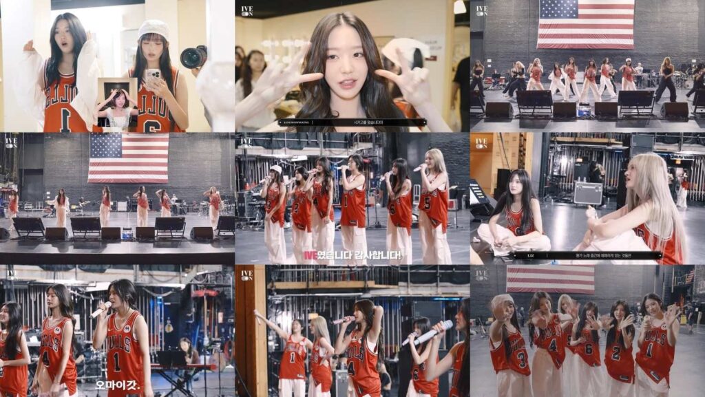 Wearing basketball team uniforms representing Chicago as their stage outfits, IVE completed their styling with individual accessories that highlighted their personalities. During the rehearsal, they elevated the atmosphere with stage and group photos and began sound checks with “HEYA”. They then performed tracks including “Accendio”, “Off The Record”, “I AM”, “ELEVEN”, “Kitsch” and “All Night”, delivering flawless performances that could easily stand as the main show.