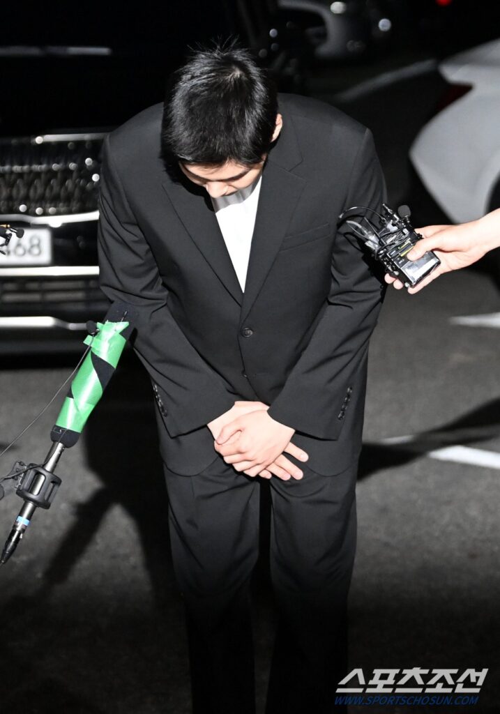 Standing on the photo line, Suga bowed his head 90 degrees and said, “I’m sorry,” expressing sincere remorse for the disappointment to many people and fans. “I will sincerely cooperate in the investigation,” he said, bending his head down once again.