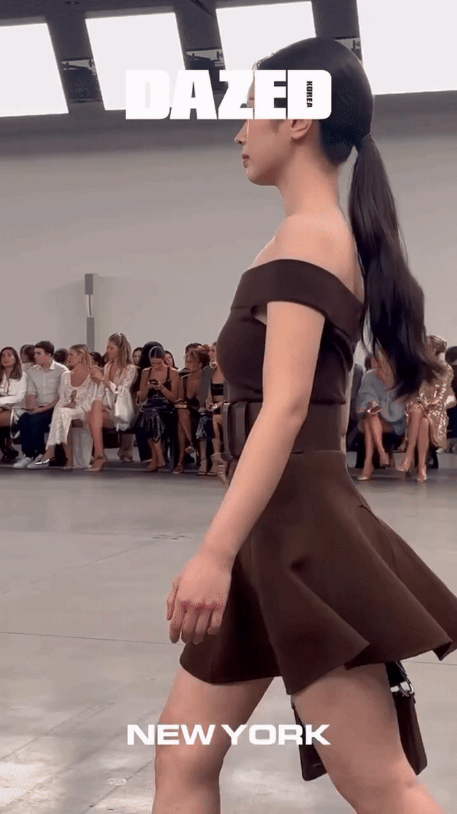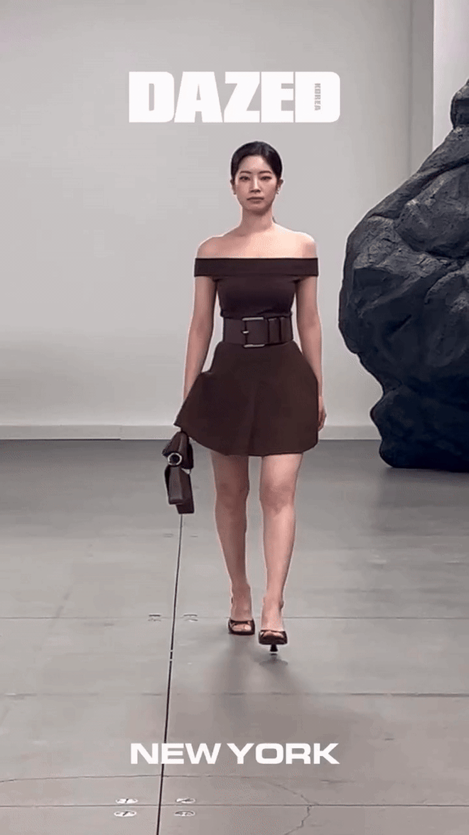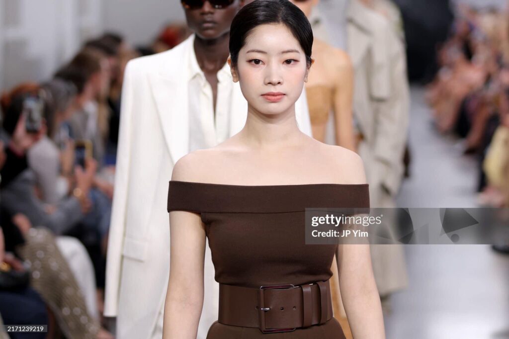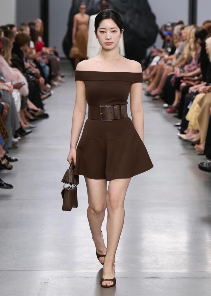Dahyun strutted down the runway during the show alongside professional models. The TWICE member wore a brown off-shoulder mini dress from the Michael Kors S/S 25 collection, showing off her delicate shoulders and radiant white skin. Born in 1998, Dahyun opted for a sleek low ponytail and light makeup to enhance her sharp, edgy visuals.