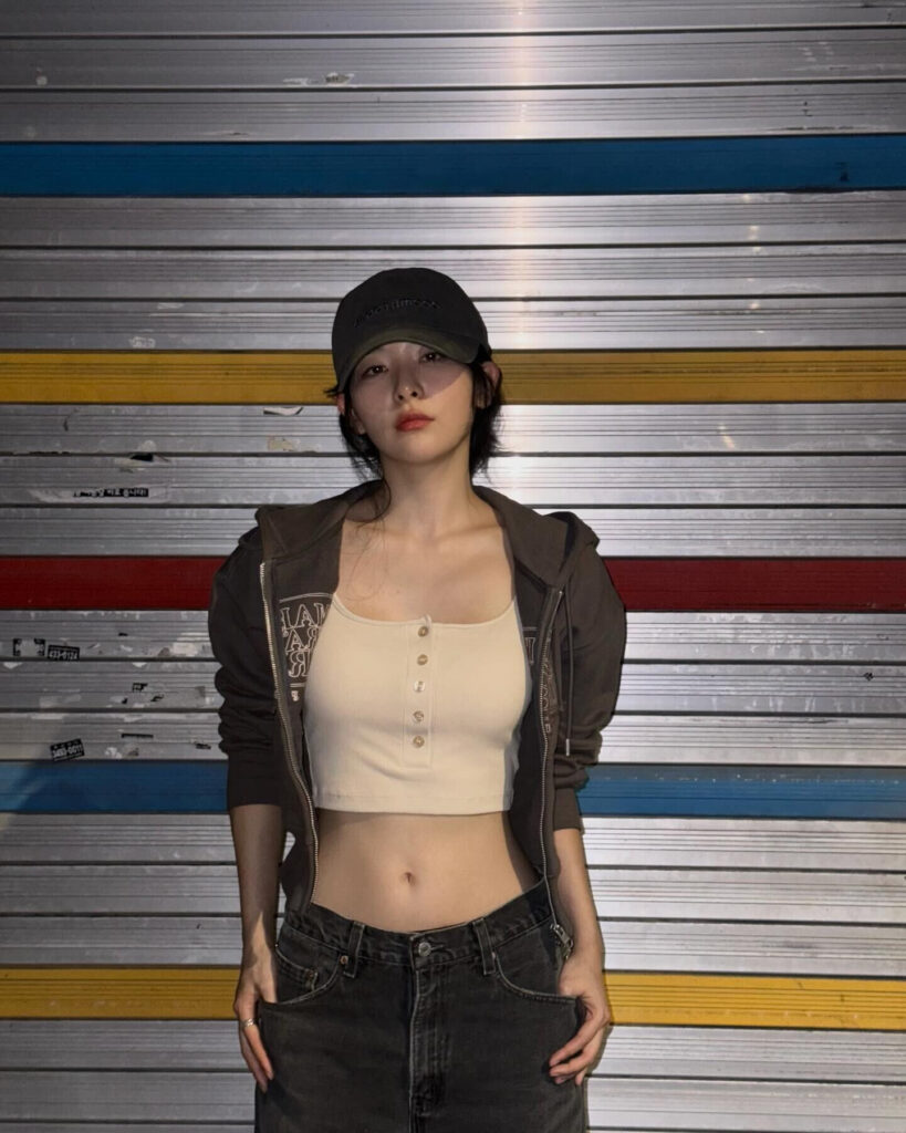 In the released photo, Seulgi stared at the camera with a chic expression while wearing a cropped T-shirt and a hooded zip-up.