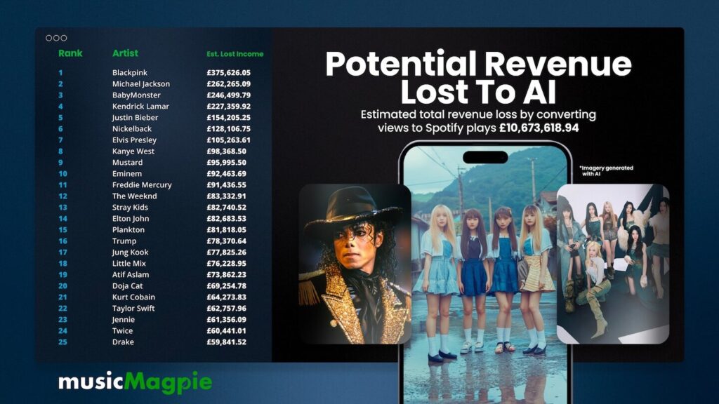 According to a study published by Music Magpie in the UK, BLACKPINK is the most streamed artist in terms of AI covers and is losing the most money due to AI-generated music.