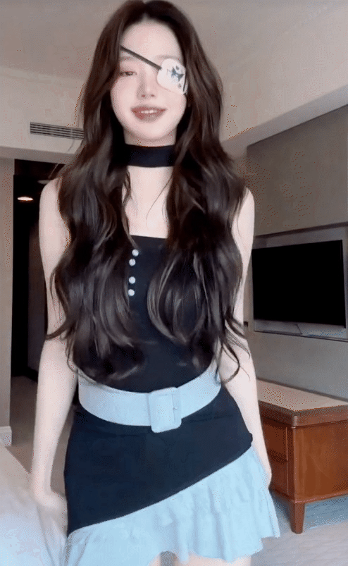 Jang Wonyoung shows off her perfect body with a tight-fitting dress that accentuates her curves, combined with a pirate-style blindfold for an impressive look. The most attractive thing is her sweet smile and charming, adorable expressions.