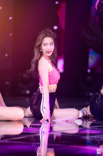 Momo wore a purple stage outfit for TWICE’s Japanese single “Celebration” performance on the Japanese music program Music Station. The wrapping around her waist gave the illusion that Momo had joined the trend. The skillful angles added to the illusion.