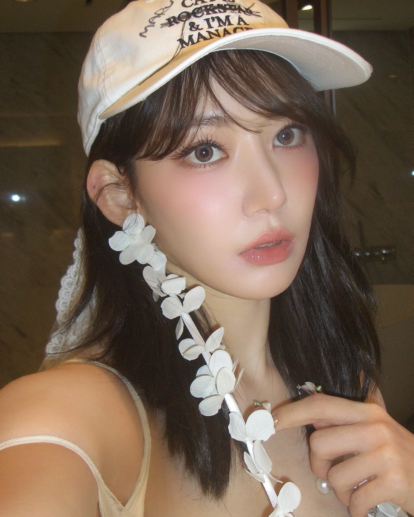 In the first photo, she paired a black jacket with a white crop top to show off her sophisticated and chic charm. In particular, she stood out with her distinct features and mature beauty. In the following photo, she wore a lovely beige dress with a hat and stared at the camera, showing off her innocent yet lovely charm.