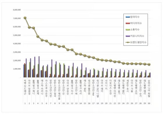 The institute analyzed 150,404,487 pieces of idol individual brand big data collected from February 25, 2025, to March 25, 2025. These data points were used to measure consumer participation, media presence, communication, and community indices. Compared to February’s dataset of 125,141,674, this represents a 20.19% increase.