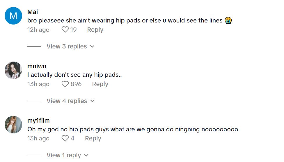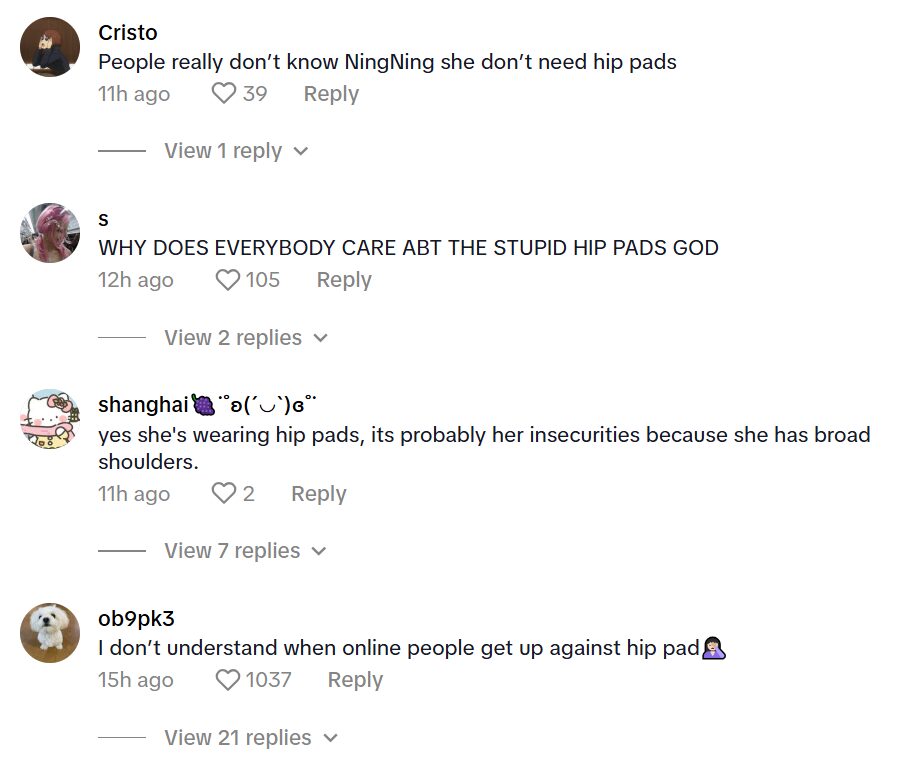 The comments of the NingNing video sparked more mixed reactions, and a debate was going on. There was a mixed consensus on whether NingNing had hip pads or not, but many hit back at the discourse explaining that there shouldn’t be anything wrong with them and idols shouldn’t be criticized if they do choose to use them.