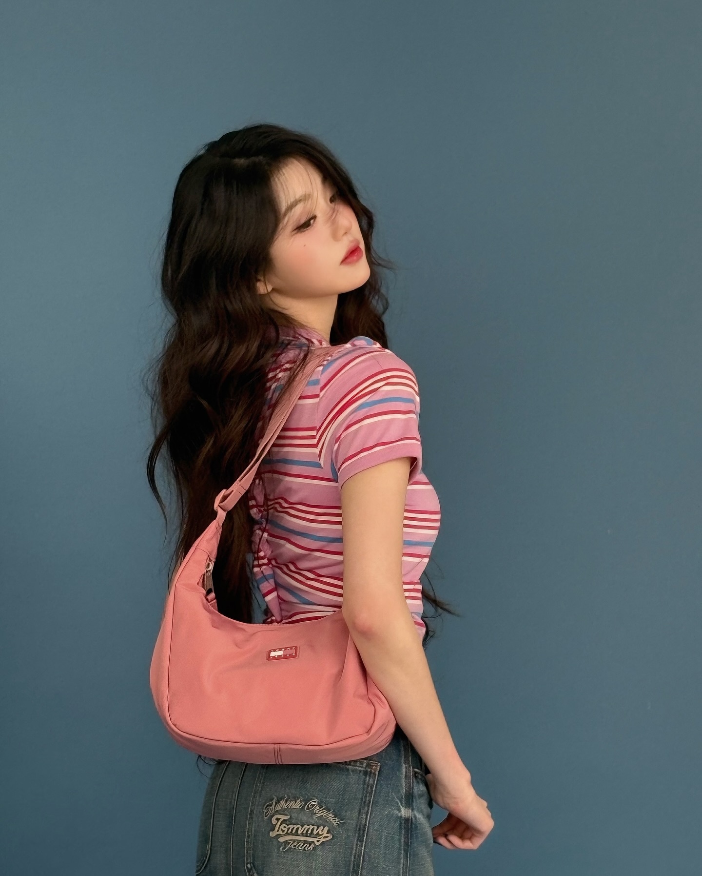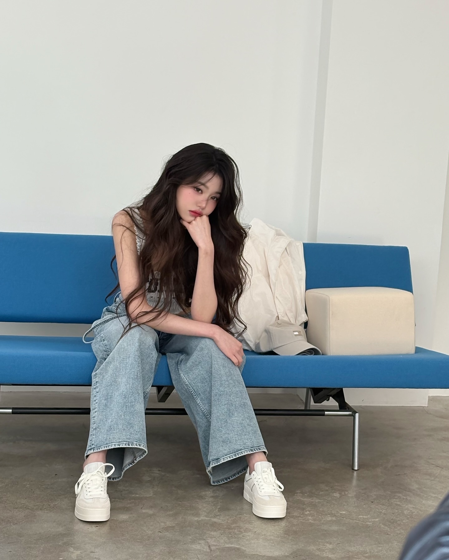 In another photo, a combination of crop tops, loose-fit shirts, and cap hats that reveal navel has completed a free-spirited and sporty mood. The natural flowing wave hair, deep eyes, and arrogant expressions are combined to create an aura that is more than a pictorial even though it is a B-cut.