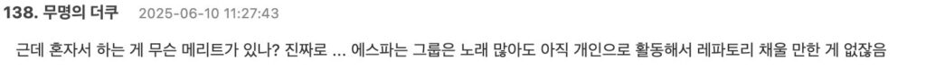 - “Is there really any point in going there solo? Although aespa has a lot of group songs, they don’t have enough solo songs to fill a whole stage performance.”