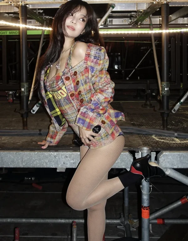 In the photo released, Jennie is posing in a brown-colored body suit and jacket with checkered patterns. At this time, the sleek, angular beauty exposed by the short bottoms, apple hip, and the lean body that is not covered by the costumes were outstanding, catching the eyes of viewers at once.