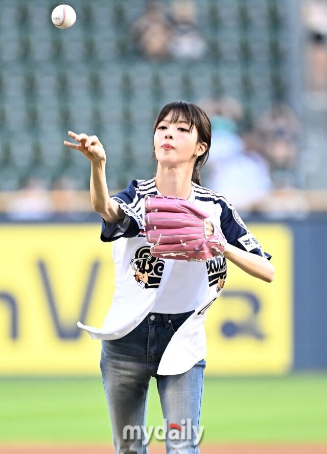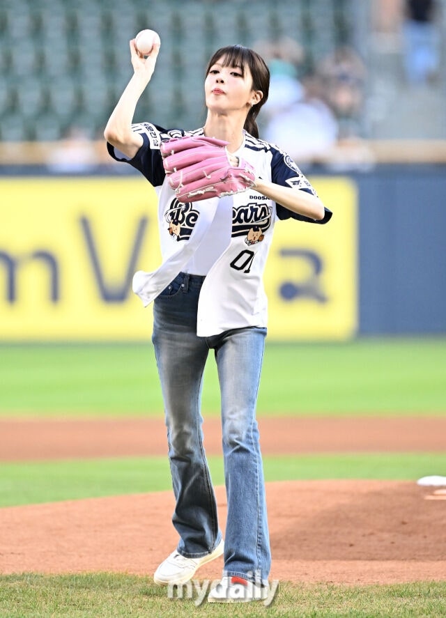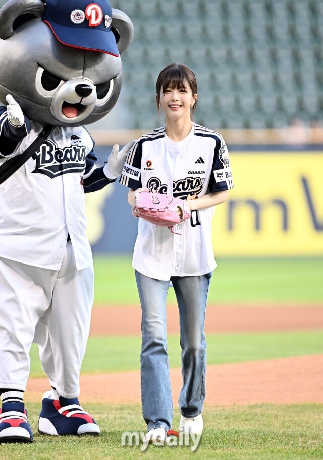 Actress Roh Jeong-eui participated in the opening pitch ceremony of the 2025 Shinhan SOL BANK KBO League game between Doosan Bears and KT Wiz at Jamsil Baseball Stadium in Seoul on the afternoon of the 22nd.