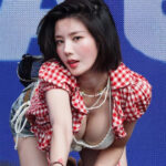 Karina emerged with a brand new look, including choppy bangs, blue eyes, and an edgy outfit.