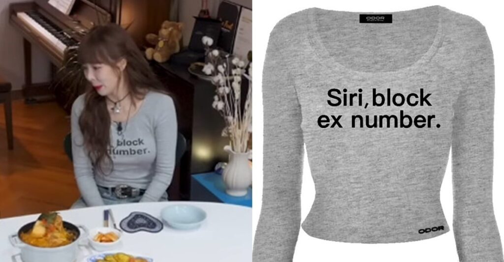 In the video, HyunA appeared wearing a T-shirt from a domestic brand. However, the shirt had the phrase “Siri, block ex number.” printed on it.