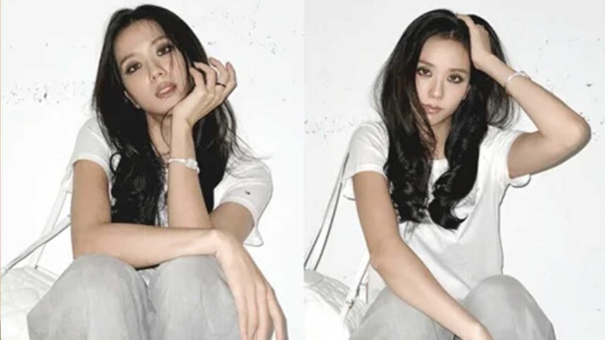 What stands out more than anything else in the picture is the part that reveals the face of a new image with long, straight hair with natural hair with curls at the end, but with deep eye lines and deep shades. The mature makeup, which is quite different from Jisoo’s unique, pure and lovely image, transformed Jisoo into a completely new look, giving her a twist of charm.