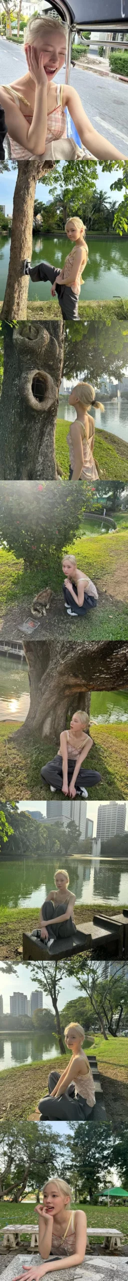The released photo shows Winter in Thailand, wearing a sleeveless top and posing with blonde hair. Fans who were surprised to see Winter’s big lizard in particular showed various reactions, such as “So cute” and “Why is the lizard so big?”