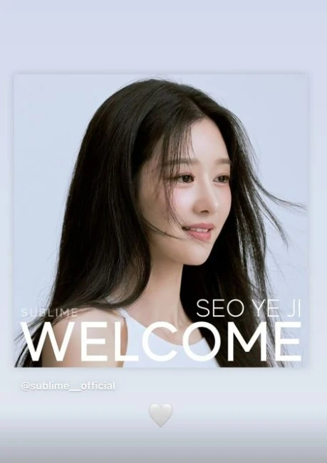 On June 25th, Sublime announced the signing of their exclusive contract with actress Seo Ye-ji by releasing a new profile picture of the actress with the message, “WELCOME TO SUBLIME. We sincerely welcome actress Seo Ye-ji to Sublime”.