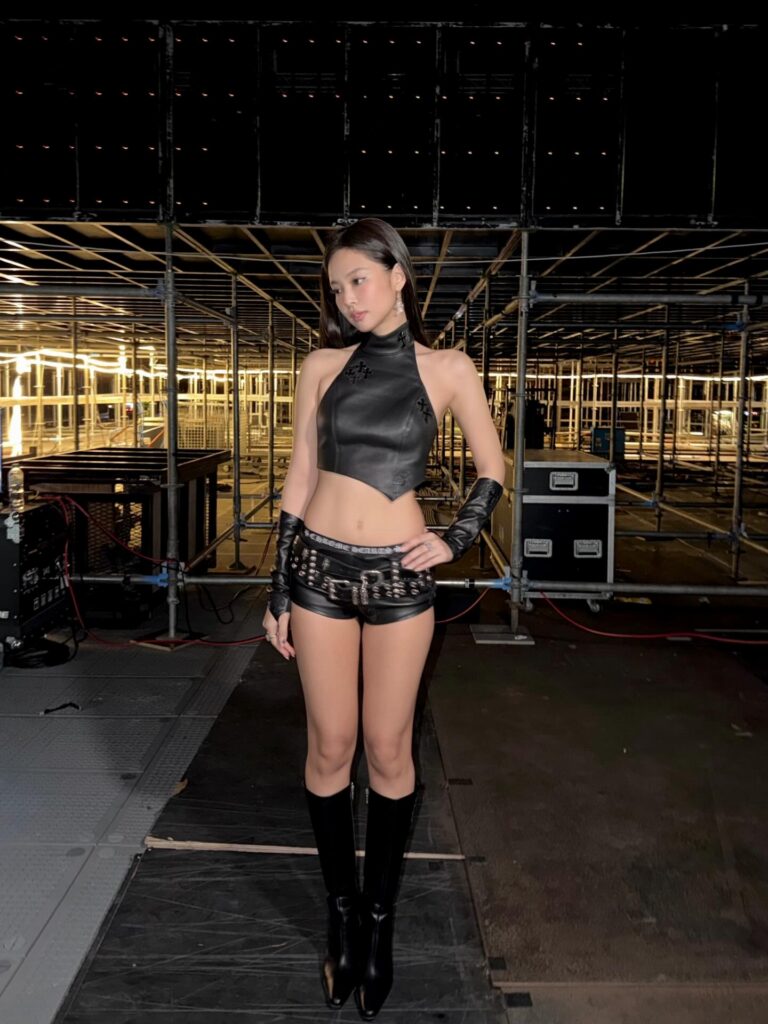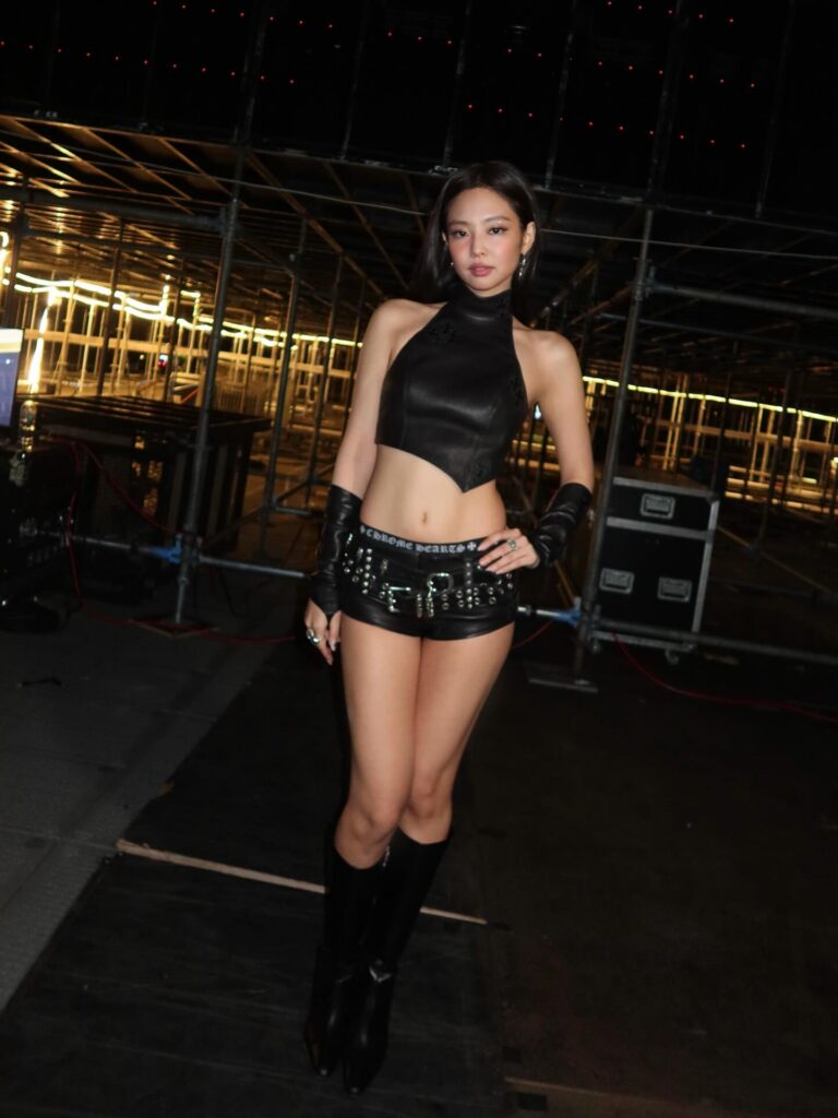The photos show Jennie attending the ‘2026 Golden Disc Awards’ recently held in Taiwan. She completed her look with a leather tube top that accentuated her square shoulders, short leather pants, and leather boots. She added a touch of glamour by revealing her underwear band above her pants.
