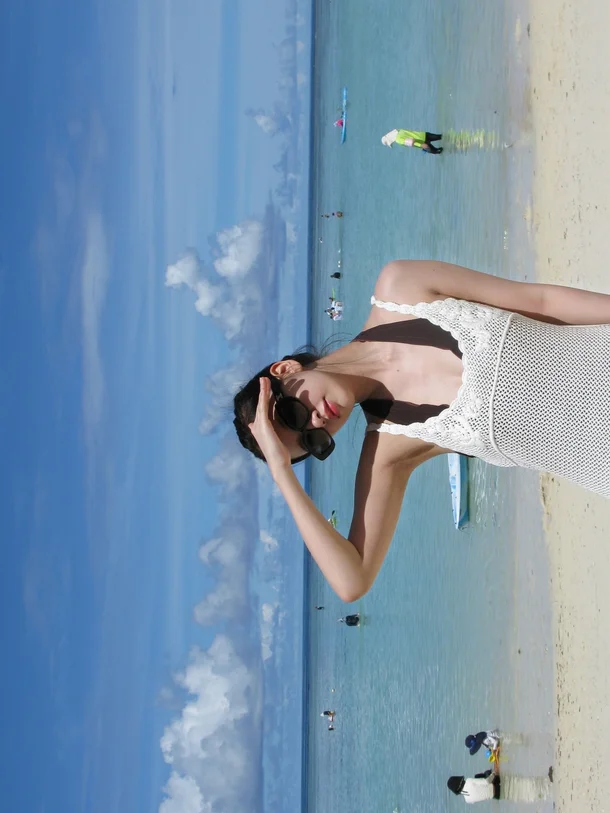 In the released photos, An Yujin is seen enjoying a leisurely time with the ocean in the background. Her sophisticated beachwear styling is particularly eye-catching. An Yujin paired a black halter-neck swimsuit with a knit cover-up, showcasing both her healthy figure and innocent charm.