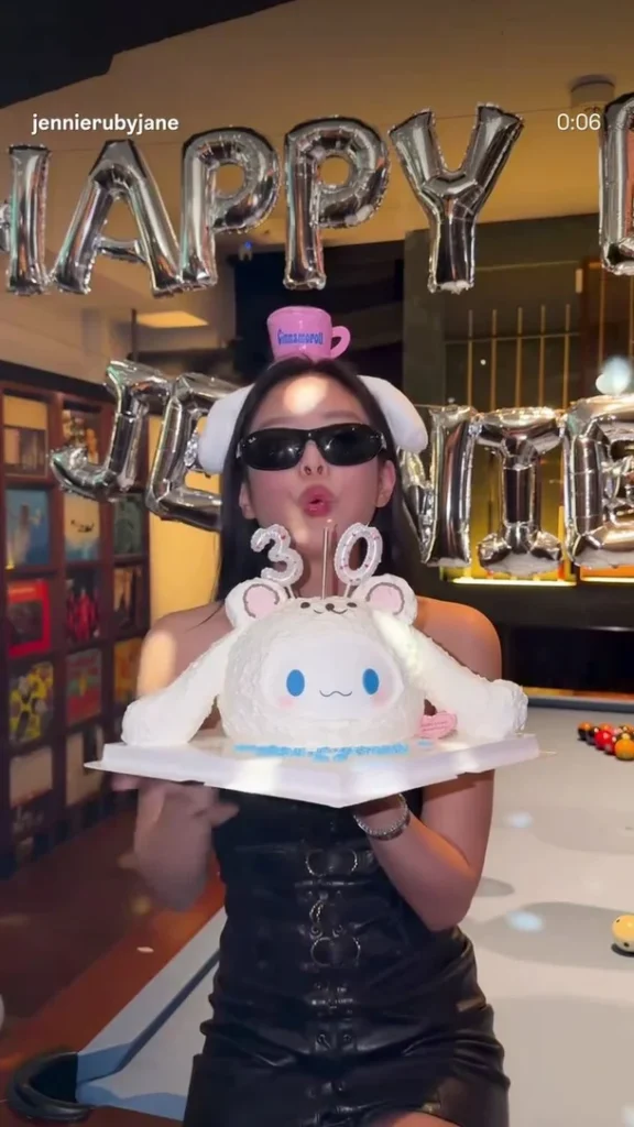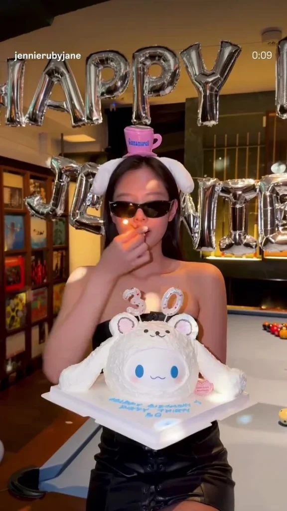 Jennie posted a short video celebrating her 30th birthday on her social media account on the 16th. In the video, Jennie holds a cake, then dons sunglasses and a character headband, which friends give her. She then has a long birthday candle in her mouth and lights it with a torch. She then places the candle in the cake and blows it out, sending smoke flying toward the camera. Jennie then removes her sunglasses and beams at the camera, seemingly revelling in her joy.