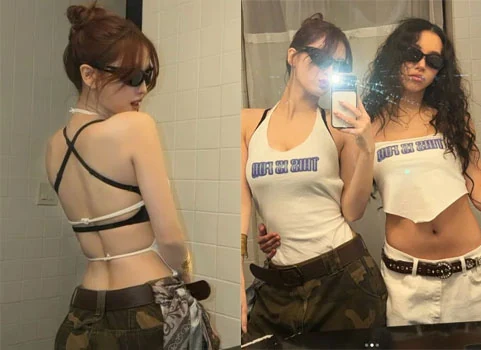 In the photo released, Momo is taking a mirror selfie in a place where white-toned tiles stand out. Especially, it is her unconventional top that overwhelms the eyes. Wearing a backless top supported by a few strands of thin straps, Momo showed off her slim, smooth and solid back line. By matching camouflage-patterned pants with brown belts and sunglasses, Momo showed off her hip and sexy appearance.