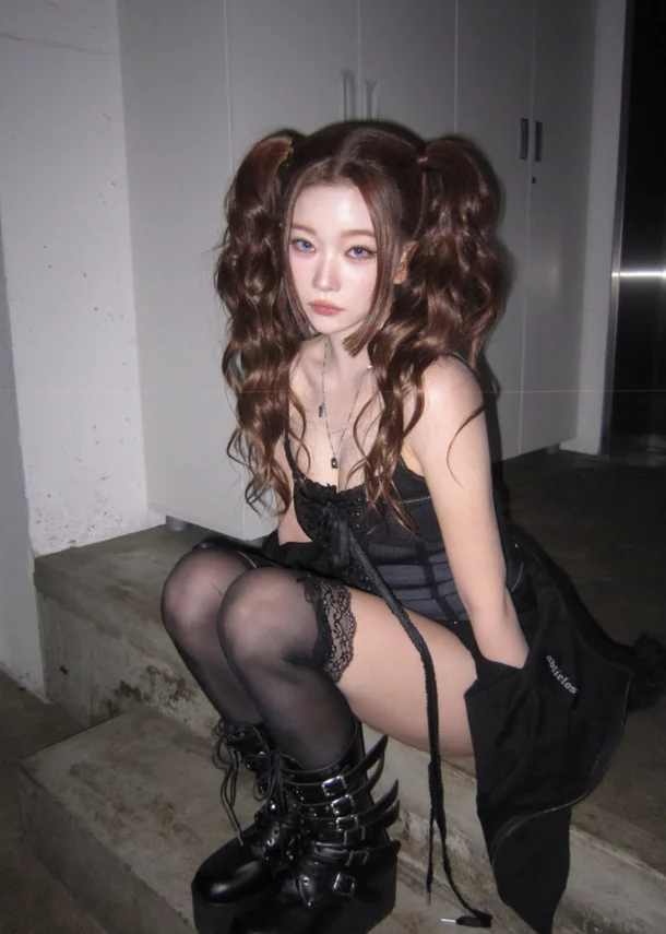 In the photo released, Tsuki completed an intense and dreamy mood by matching a black corset top with a lingerie style with lace details. The design emphasizing a slim silhouette, lace stockings around the thigh, and buckle-decorated walker boots are combined to double the chic atmosphere.